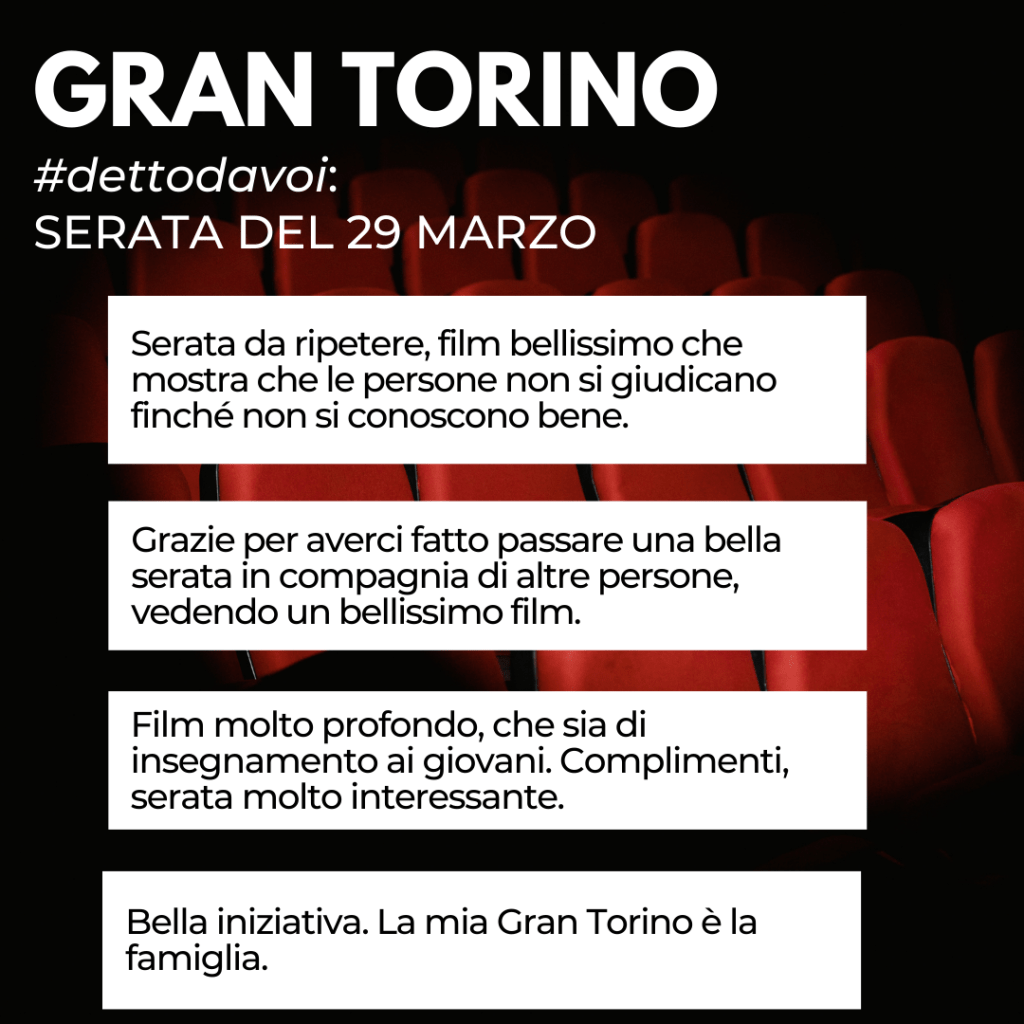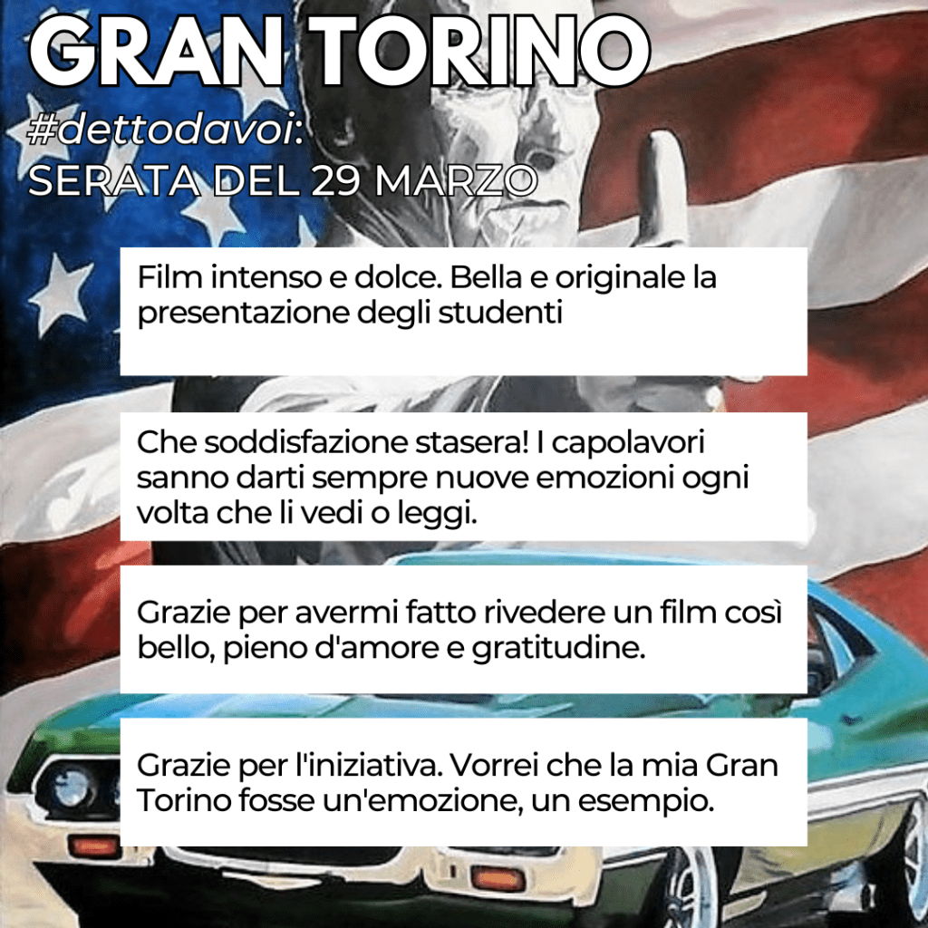 Gran Torino tocca molte corde dell’animo di ognuno di noi, costringe a riflettere sul senso della vita e della famiglia, se ciò che conta è il legame di sangue o quello che si crea, profondo, con qualcuno che sentiamo a primo impatto così “diverso” da noi.