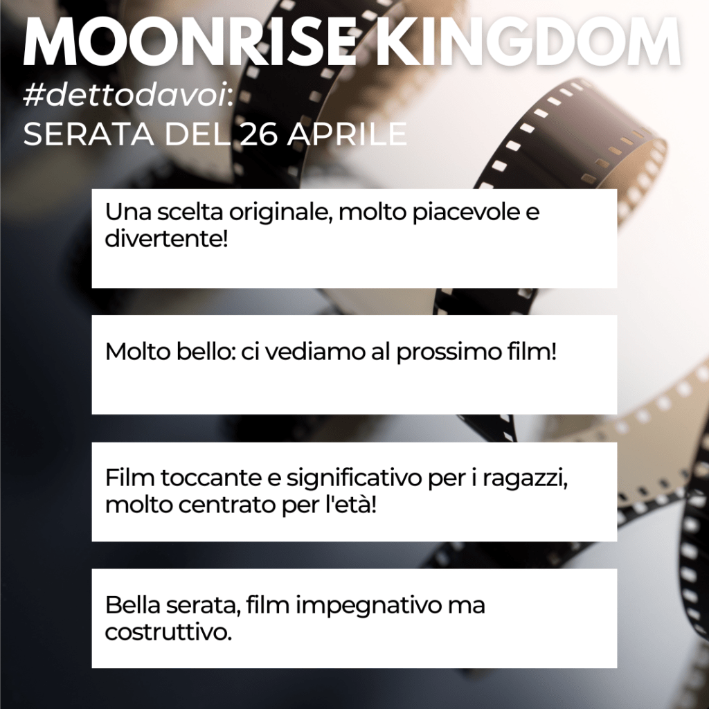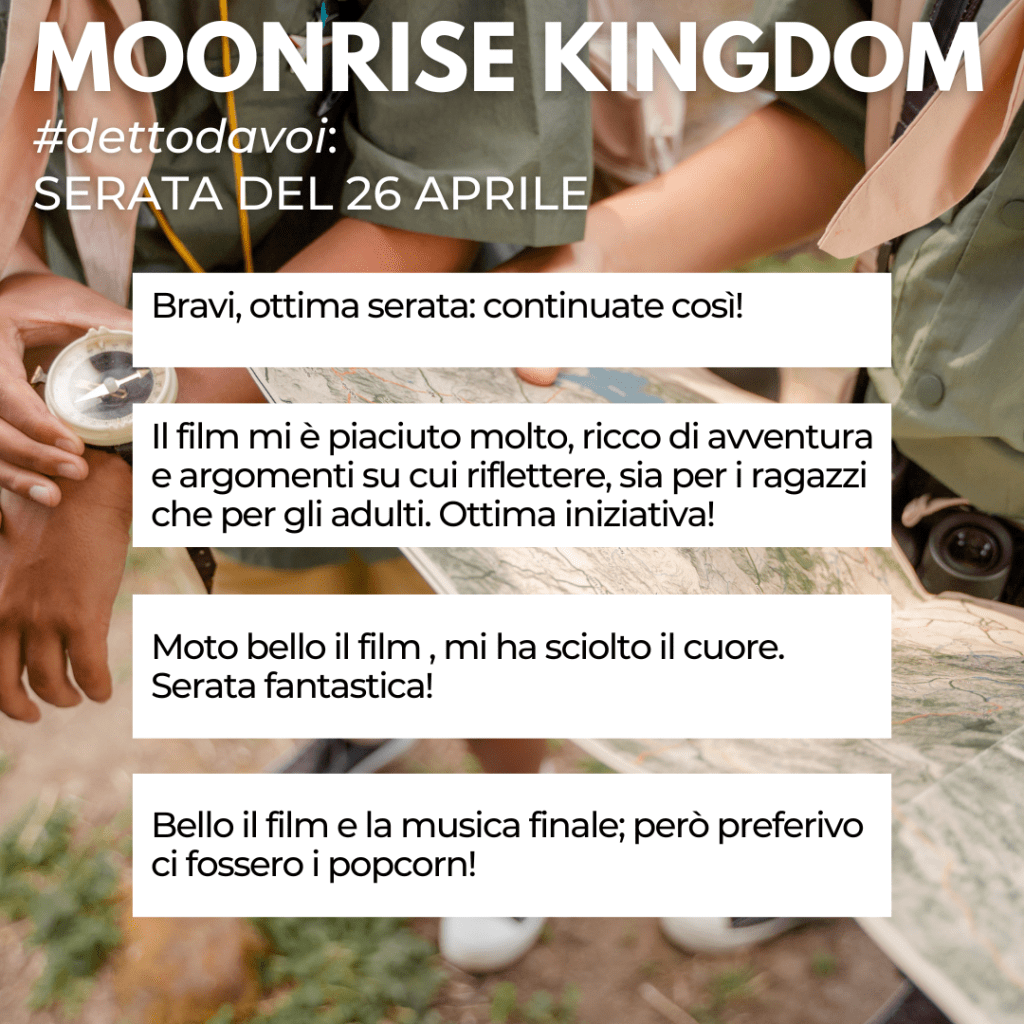 Ecco la carrellata di commenti alla prima serata di proiezione (26 aprile) del film Moonrise kingdom, preceduta dalla presentazione ad opera dei ragazzi e delle ragazze della 2A!