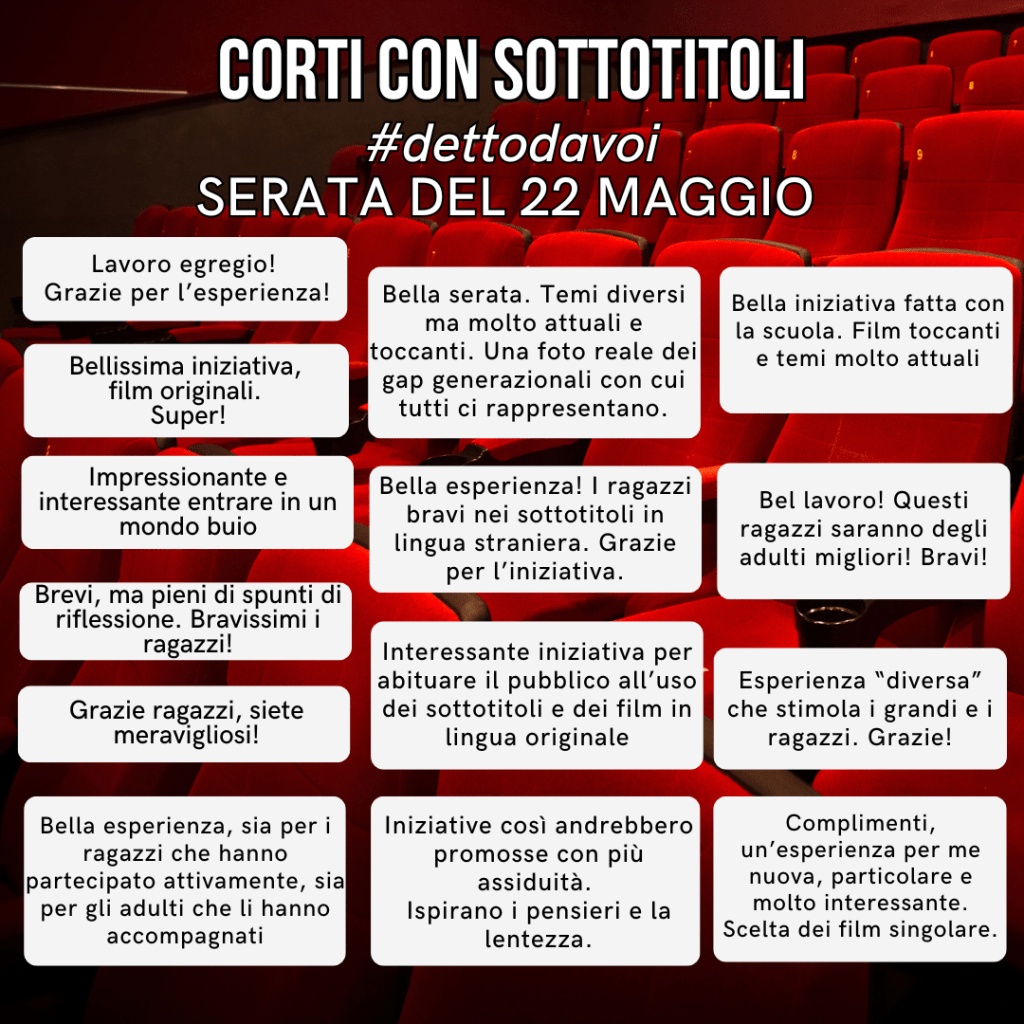 Ecco i commenti – sempre davvero molto positivi – del pubblico presente in sala il 22 maggio!